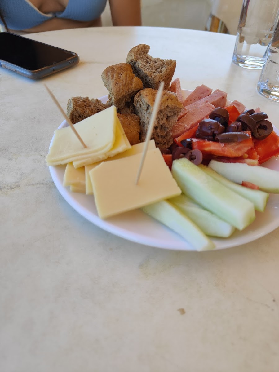 Vrachos occupies a breathtaking spot on the beach, characterized by its smooth pebbles and expansive sandy stretches. The atmosphere is relaxed and inviting, perfect for enjoying a leisurely morning coffee or an afternoon snack after a refreshing swim in the crystal-clear waters. The café's location atop a rocky outcrop provides a panoramic view of the southern coast of Crete, making every sip of your drink accompanied by the serene sound of waves gently lapping against the shore.